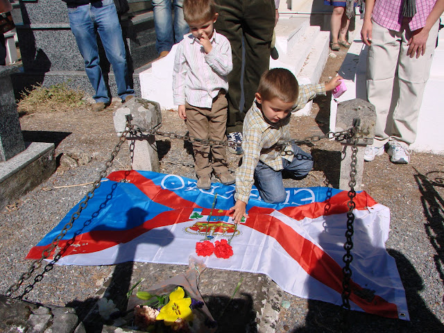 Placa cos versos do autor colocada na tumba de Moarales con motivo da 2ª Escola Fermín Penzol (2006). |